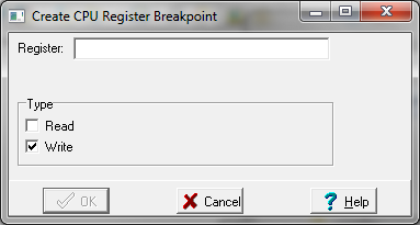 This dialog allows you to define a new breakpoint based on either (or both) reads and writes to the register. The register is in the top box. Check the types of access that you want to break on.